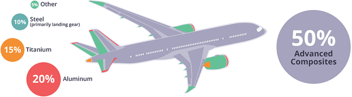 Sản xuất máy bay sử dụng đến 50% vật liệu tổng hợp. Nhà sản xuất đã giảm được 20% trọng lượng máy bay so với thiết kế nhôm thông thường trên chiếc boing 787.